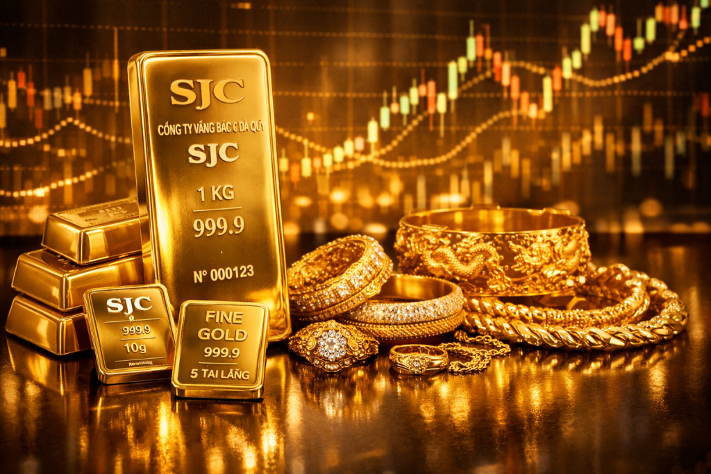 • Giá vàng miếng SJC tăng 1 triệu đồng/lượng ở chiều mua