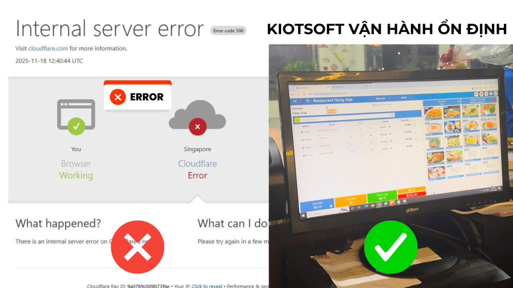 Sự cố tối 18/11 cho thấy nhiều nền tảng phụ thuộc lớn vào hạ tầng Internet. Với hộ kinh doanh, một hệ thống ổn định là yếu tố quan trọng. Kiotsoft duy trì tốc độ truy cập tốt trong suốt thời gian sự cố diễn ra. Người dùng có thể tiếp tục bán hàng mà không bị ảnh hưởng.