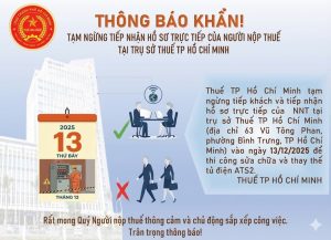 Cục Thuế TP.HCM khuyến nghị cá nhân, hộ kinh doanh và doanh nghiệp trên địa bàn chủ động điều chỉnh lịch làm việc. Người nộp thuế nên hạn chế đến trụ sở trong ngày 13/12/2025. Mục đích là tránh phiền toái và gián đoạn xử lý hồ sơ.
